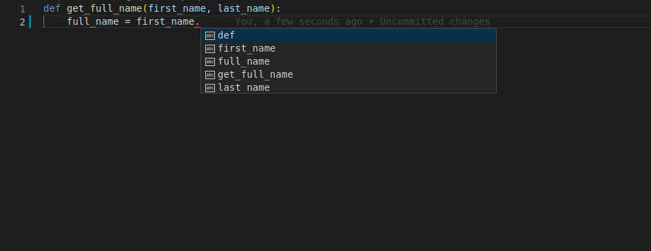 당신은 first_name를 입력한 뒤 점(.)을 입력하고 자동완성을 켜기 위해서 Ctrl+Space를 눌렀습니다.