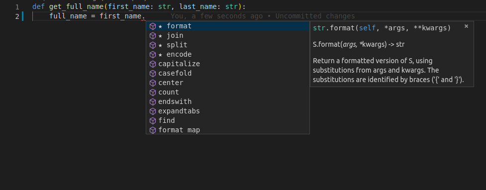 그리고 에디터는 계속 str라는 사실을 알고 도와줍니다.